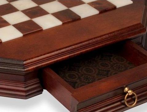 Echiquier en Bois Massif Octogonal avec Tiroir de Rangement et Plateau en Albâtre de Toscane – Qualité Supérieure et Design Unique