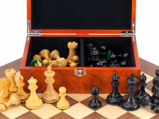 Ensemble Highgrove Echiquier en Bois d’Erable et de Noyer, Jeu d’Echecs en Buis de Buis Ebonisé & Coffret de Rangement en Placage de Racine | Jeu de Société de Luxe pour Collectionneurs
